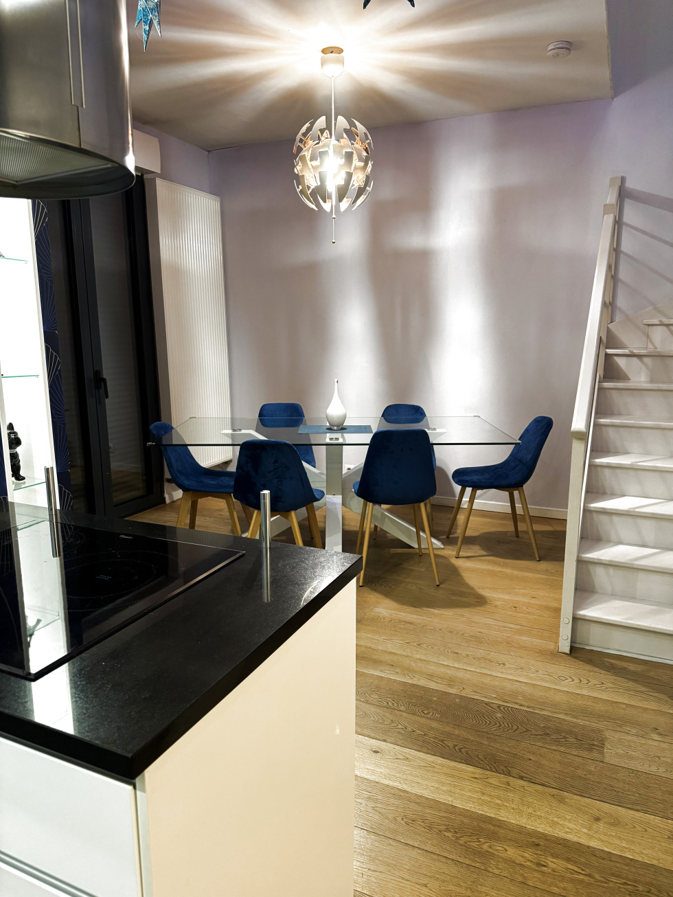 LOCATION VIDE - MAISONS ALFORT - 4/5 PIECES DUPLEX AVEC COUR PRIVATIVE et GARAGE Situé au rdc et 1er étage d'un immeuble Rue de la Belle Image à Maisons Alfort, proche du M° Maisons Alfort-Stade et à proximité des bords de Marne, un très bel appartement en duplex comprenant au RDC : une entrée, une salle à manger, un WC, un séjour avec cuisine ouverte meublée et semi-équipée (plaques de cuisson et four) donnant sur la cour privative, un placard, un garage, un escalier menant à l’étage ; Au 1er étage : 3 chambres dont une avec grand dressing, un placard pour machines, un couloir, une salle de bains avec baignoire et douche, un WC séparé. Chauffage et eau chaude individuels gaz. Annexes incluses dans la location : un garage de 4.46m x 3m, une cave d'environ 20m², une cour privative d'environ 25m² avec cabanon d'environ 3m². Appartement LIBRE au 30/03/2026. LOCATION SOUMISE A L'ASSURANCE LOYERS IMPAYES Surface habitable : 89.49m² - Loyer : 2 330.00 € par mois charges comprises, Dont 130.00 € de charges locatives (provision donnant lieu à régularisation annuelle) Dépôt de garantie : 2 200.00 € - Honoraires charge locataire : 1 342.35€ TTC dont 268.47 € TTC pour l'état des lieux. « CLASSE ENERGIE : E (241) - CLASSE CLIMAT : E (52), DPE NOUVELLE VERSION» Montant estimé des dépenses annuelles d'énergie pour un usage standard : entre 1930€ et 2660€ TTC/an. Date de référence des prix de l'énergie pour établir cette estimation : 2021 - 2022 et 2023. « Les informations sur les risques auxquels ce bien est exposé sont disponibles sur le site Géorisques : www.georisques.gouv.fr ». Pour les demandes de visites et les dépôts des dossiers, nous utilisons la plateforme PLATO en suivant ce lien : XXXXXXXXX Si vous ne retrouvez pas le lien sur l'annonce consultée, vous pouvez aller sur l'annonce de l’appartement qui vous plait qui est sur notre site www.desrueimmobilier.com et vous n’avez qu’à cliquer sur "prendre rv". Merci et à bientôt